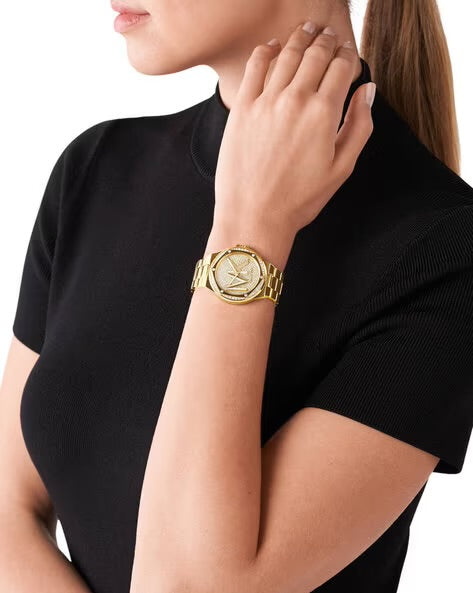 The Michael Kors Lennox Pavé Logo Rose Gold-Tone Watch combines refined elegance with contemporary design. Featuring a rose gold-tone stainless steel case and bracelet, this timepiece showcases a signature pavé-embellished logo dial that catches light beautifully. The precise quartz movement ensures reliable timekeeping, while the water-resistant construction makes it suitable for daily wear. A perfect blend of luxury and accessibility, this watch elevates any occasion from casual to formal. Ideal for those seeking a statement piece that balances sophistication with wearability.